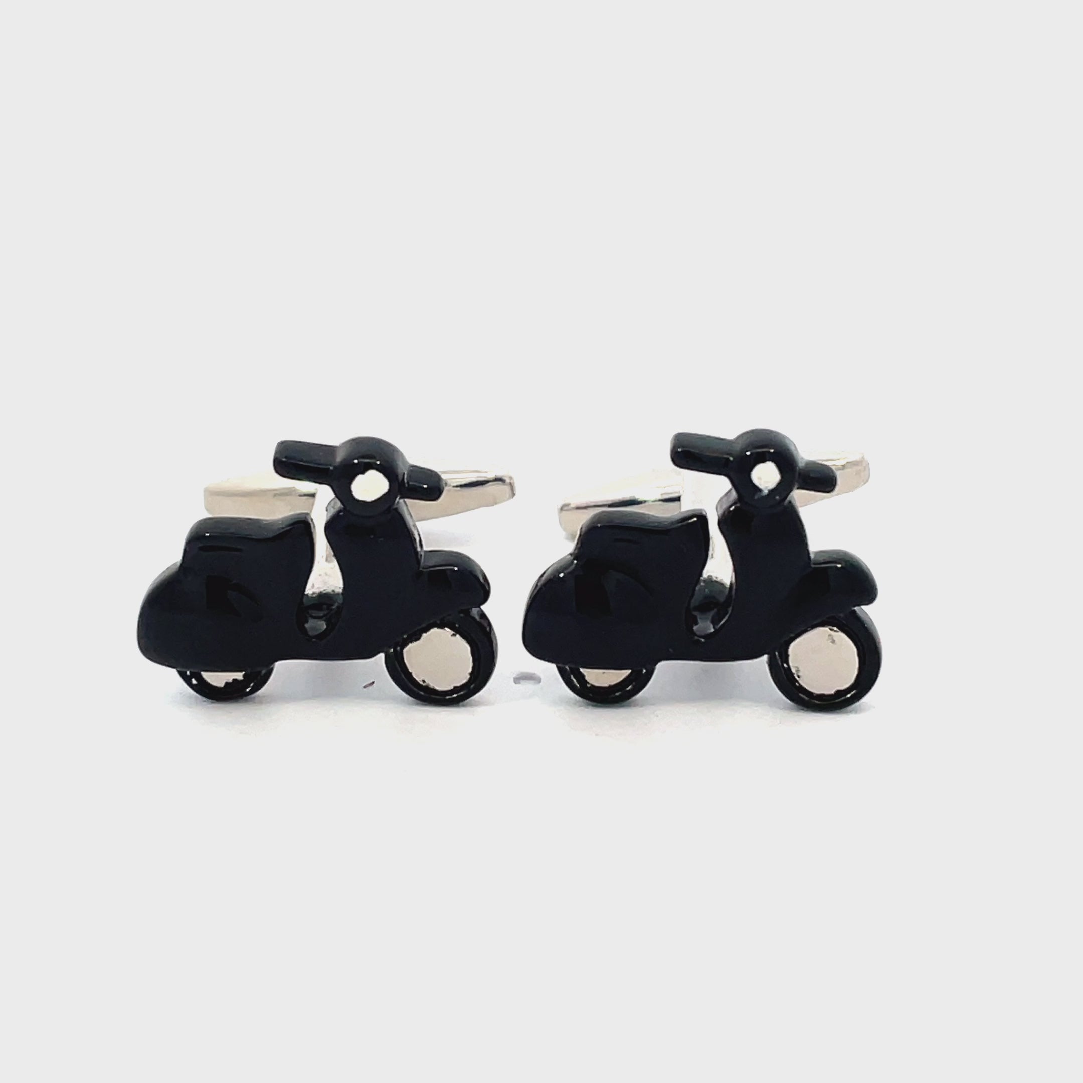 Add a little retro cool to your cuff with these sleek Scooter Black Cufflinks. Featuring a glossy black enamel finish and silver-tone detailing, they’re the perfect accessory for mod enthusiasts, Vespa lovers, or anyone who appreciates a stylish ride. Finished in enamel and shiny rhodium plating.