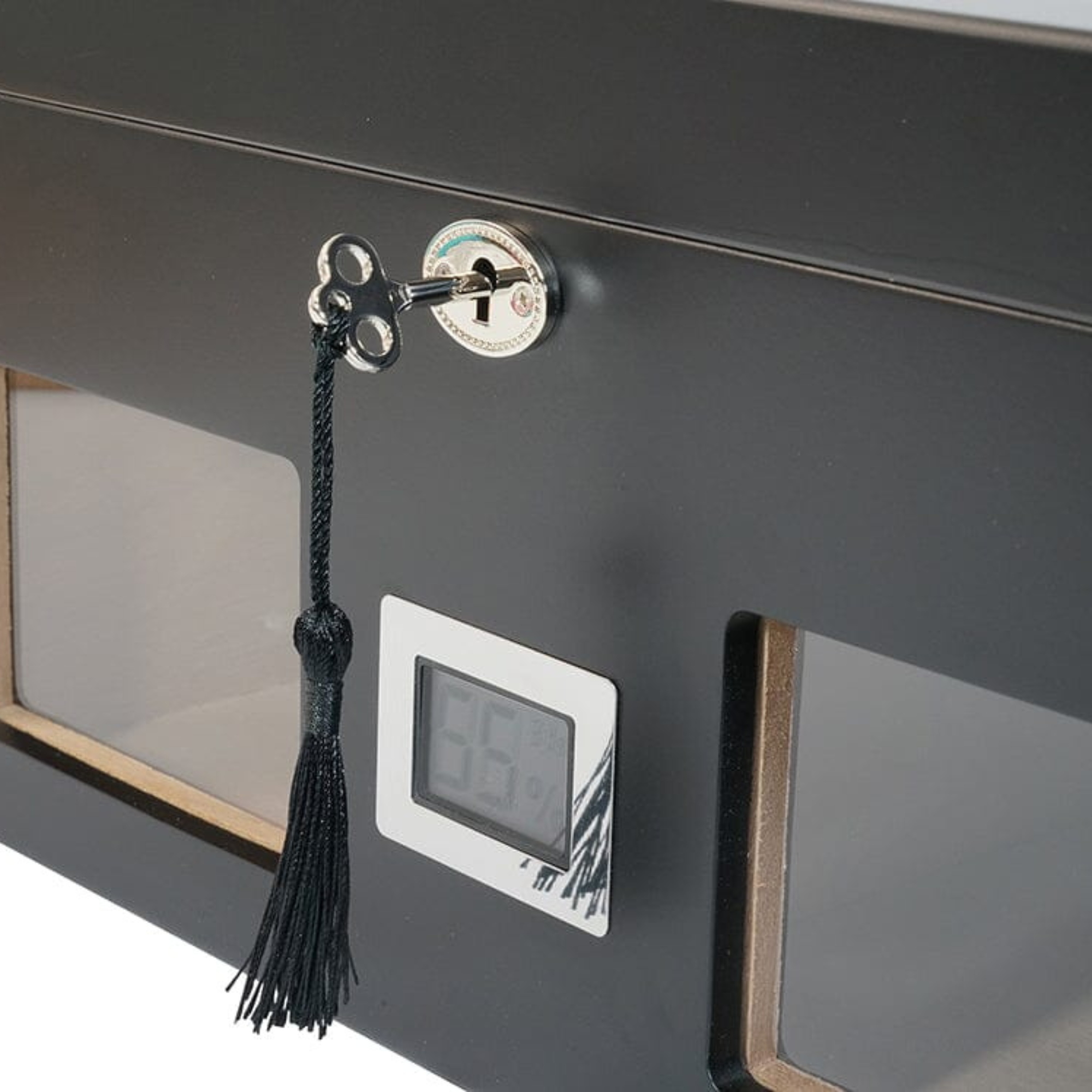 Quick same-day dispatchHandmade and eco-friendly humidors are perfect for a cigar aficionado. Expertly designed, this durable Black Wooden Cigar Box can keep up to 100 CT of your valuable and sensitive cigars fresh, and able to deliver the flavour and aroma that you love. An excellent display box for your cigars for everyone to adore.