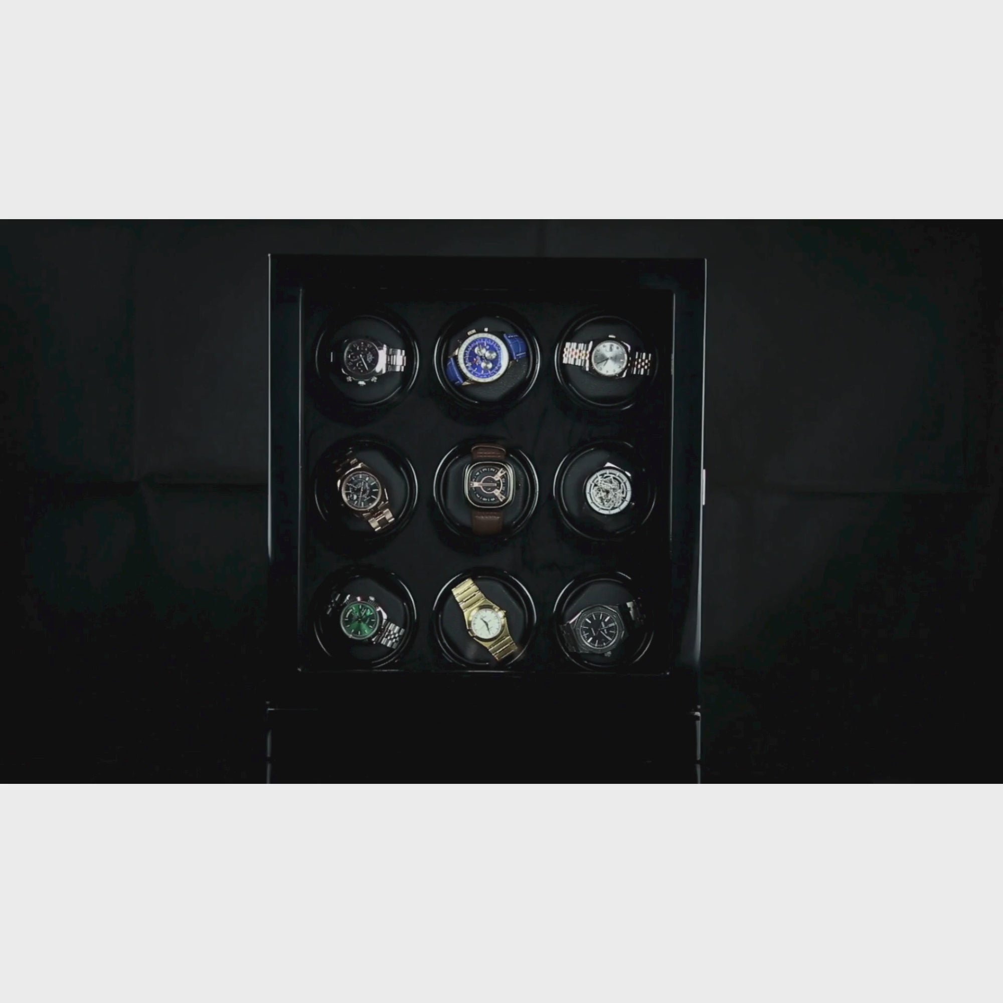 This automatic watch winder box keeps your automatic watches wound and ready to wear. This box has the capacity for 12 watches on the 12 winding rotors.