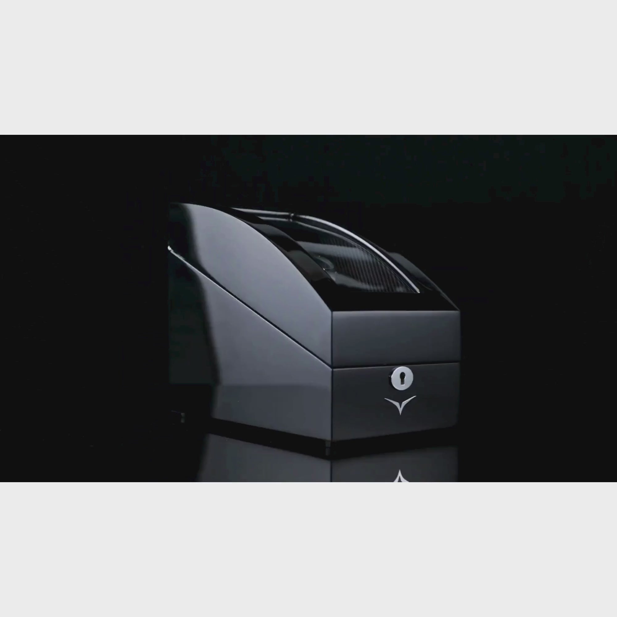 - Finished in a glossy piano black with a carbon fibre interior and a tempered glass window