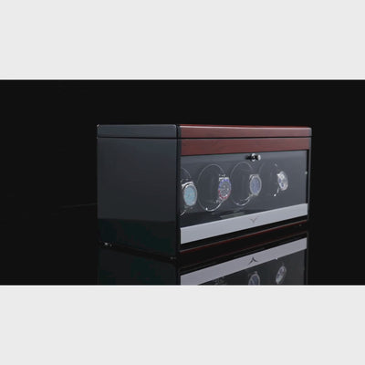 SAFE: Like our other collection of watch winders, this watch winder for 4 on 4 winding rotors is equipped with a safety program that ensures that they can never over-wind a timepiece. It completes its intermittent winding program during a 12-hour period and then rests for 12 hours, allowing your watch to run as it would without being worn during nighttime. Perfectly mimicking natural winding whilst on your wrist.