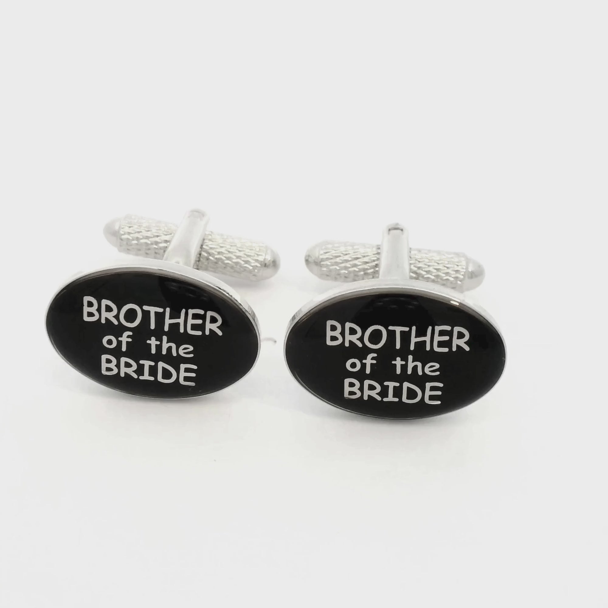 Make a statement on your special day with our Brother of the Bride Wedding Cufflinks, these are chrome cufflinks with 'Brother of the Bride' on each cuff with a black background and white text. These elegant cufflinks are the perfect accessory for the brother who stands proudly by the bride's side. Whether you're celebrating with family or dancing the night away, these cufflinks add a touch of style and sentiment to any wedding attire.