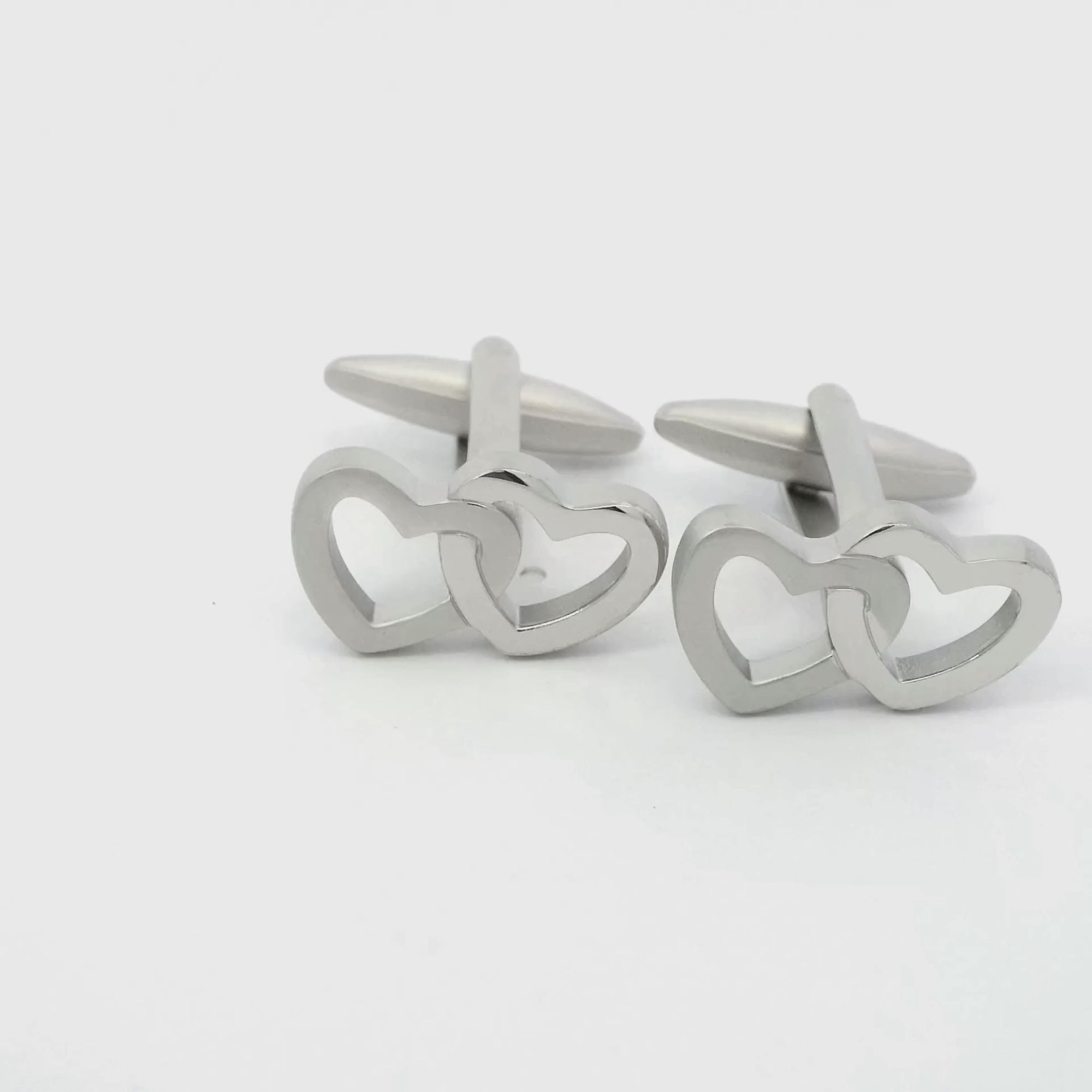 Introducing our Entwined Hearts Cufflinks, a symbol of timeless love and romantic elegance. These cufflinks feature intertwined hearts, delicately designed in shining silver. Each cufflink represents the enduring bond shared between two souls, making them the perfect accessory for weddings, anniversaries, or any special occasion celebrating love.