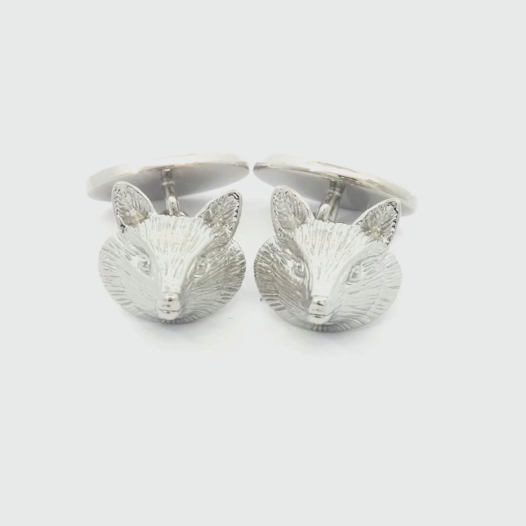 Introducing our Fox Face Cufflinks, perfect for those on the hunt. These cufflinks feature a detailed depiction of a fox's face, complete with alert, pointed ears and a keen expression. These cufflinks are silver plated with a chain link oval backing and are finely crafted to great detail.