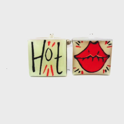 Make a bold statement with these Hot Lips 2 Cufflinks! Featuring a striking design with red lips on one cufflink and a "HOT" statement on the other, these cufflinks add a playful and daring touch to any outfit. Finished in enamel and rhodium plating.