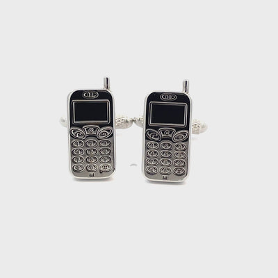 Celebrate the nostalgia of early mobile technology with these Mobile Phone Cufflinks. These cufflinks feature a detailed vintage mobile phone design, complete with an old-school keypad, antenna, and display. Finished in brushed rhodium plating.